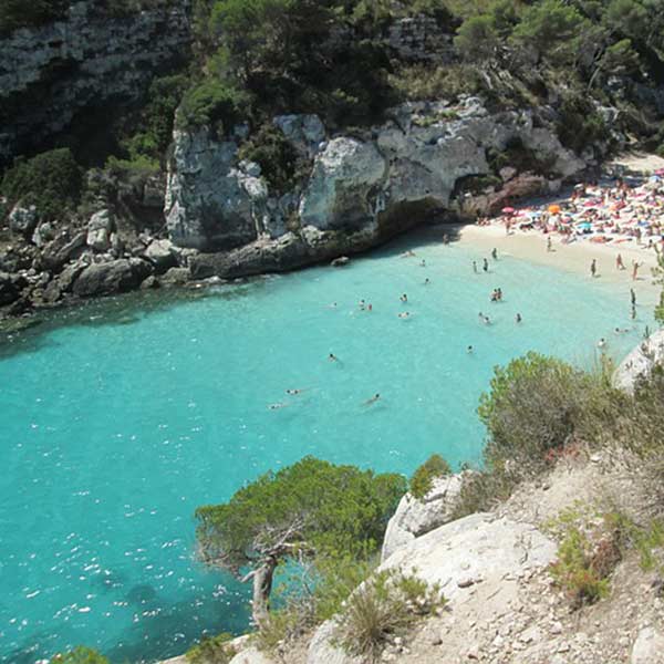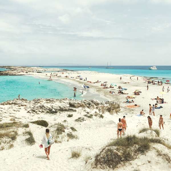 Auf Ibiza ist Cala Conta zwar kein Geheimtipp mehr, dennoch zählt sie zu den schönsten Buchten der Insel. Das türkisfarbene Wasser ist kristallklar und der von Sanddünen gesäumte Bereich ist besonders kinderfreundlich. Am von Felsen umgebenen Strand kann man zudem hervorragend schnorcheln. Ein weiterer Strandabschnitt ist über die Klippen zugänglich. Der Blick auf die vorgelagerten Inseln ist zwar verlockend, doch selbst geübte Schwimmer können sie nicht erreichen. Wer am frühen Morgen oder späten Nachmittag kommt, findet oft deutlich mehr Platz. Viele Besucher warten bis zum Sonnenuntergang, um die besondere Atmosphäre zu genießen.